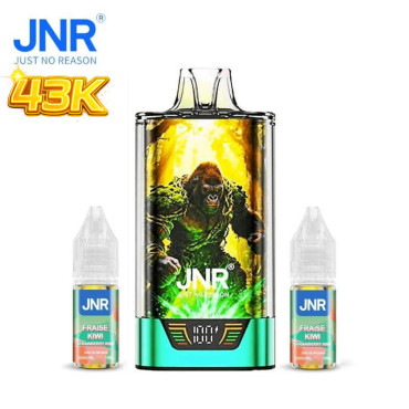 Le Kit Puff Strawberry Kiwi Gorilla X 43K JNR est fourni avec deux flacons de e-liquide JNR 10ml en 20mg/ml de nicotine pour prolonger cette expérience de vape fruitée.