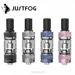 Ce clearomiseur Q16 Pro de Justfog est un modèle compact destiné à la vape MTL. Il se connecte à une box afin de former une cigarette électronique complète.