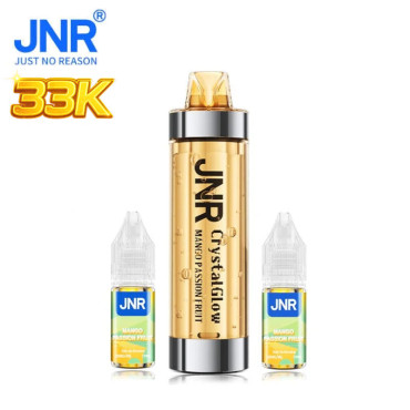 Avec tirage automatique sans réglage, le Kit Puff Mango Passion Fruit Crystal Glow JNR délivre environ 33000 bouffées et combine une batterie 800mAh USB-C à des résistances double mesh pour une restitution stable des saveurs.