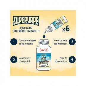 Zéro prise de tête en vue avec le pack Basebooster 50/50 SuperVape 200 ml. Ce pack spécial DIY contient du booster de nicotine et une base neutre PG/VG 50/50 de 200 ml. Ajoutez le booster dans la base pour obtenir une base nicotinée en 3 mg/ml ou 6mg/ml selon le dosage que vous aurez choisi ! Il ne vous restera plus qu'à ajouter de l'arôme concentré pour donner la saveur de votre choix à votre e-liquide DIY et d'attendre quelques jours.