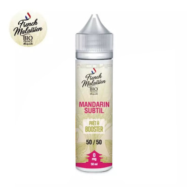 Vous avez envie de vaper du e-liquide bio sans vous ruiner ? Le Mandarin Subtil French Malaisien 50 ml est là pour ça ! Ce e-liquide bio pas cher est vendu dans un flacon de 50 ml, accompagné d'un ou deux boosters de nicotine en fonction de votre dépendance, de façon à obtenir du 3 mg/ml (1 booster) ou du 6 mg/ml (2 boosters). Le mélange est facile à faire et rapide !