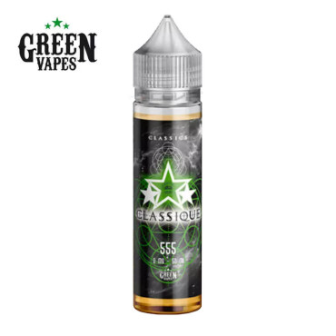 Il s’agit du e-liquide 555 Green Vapes, un format 50ml qui développe un arôme de classic blond et appartient à la gamme tabac de la marque.