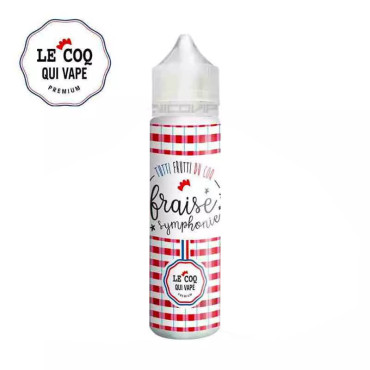 L'e-liquide Fraise Symphonie de la marque Le Coq Qui Vape développe un arôme de fraise. Conditionné en flacon de 50ml, il présente un ratio PG/VG adapté à la cigarette électronique pour une production de vapeur équilibrée.