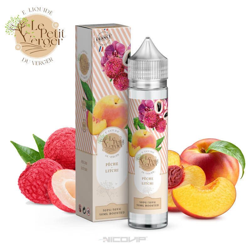 Cet e-liquide français de 50ml associe des saveurs de pêche et de litchi. Le Petit Verger, certifié AFNOR, propose cette recette en format XL.
