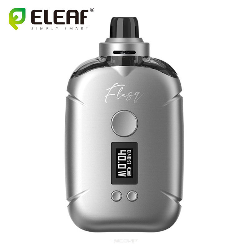 Cette cigarette électronique au format pod est équipée d’une batterie intégrée de 1370mAh rechargeable en USB-C et peut atteindre une puissance de 40W. Le modèle FlasQ d’Eleaf fonctionne avec les résistances GTL et dispose d’une cartouche de 5ml avec bague d’airflow pour un tirage modulable.