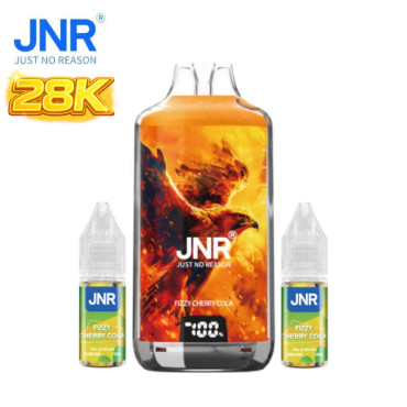Le Kit Puff Fizzy Cherry Cola Falcon X 28000 JNR inclut deux flacons de e-liquide en sels de nicotine et fonctionne sans bouton pour une utilisation simple avec cigarette électronique.
