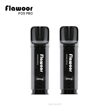 Voici un pack de 2 pods Pomme Pêche Flawoor Pod Pro, chacun prérempli avec un e-liquide aux arômes de pomme et de pêche. Chaque pod de 2ml se fixe par système de clippage sur la batterie Flawoor Pod Pro et contient un e-liquide fabriqué en France.