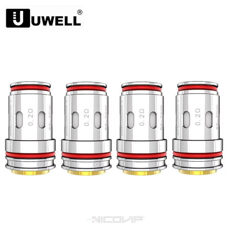 Il s'agit d'un pack de 4 résistances Uwell compatibles avec l'atomiseur Crown V Uwell. Ces résistances intègrent la technologie mesh : grille de fil résistif entourant le coton.