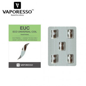 Ce pack comprend 5 résistances EUC de Vaporesso en version ceramic ou traditional. Elles sont proposées en 0,3ohm ceramic et 0,5ohm traditional et compatibles avec l’atomiseur Veco du kit Tarot.